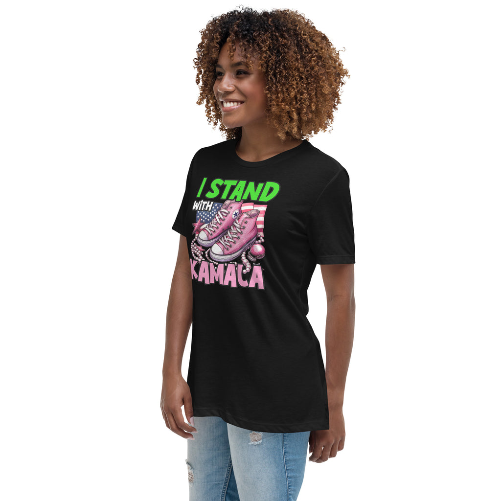 I'm with Kamala - Pink and Green Women's Relaxed T-Shirt