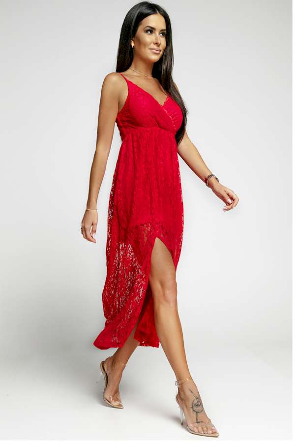 Effortless Elegance Red Lace V Neck Maxi Dress