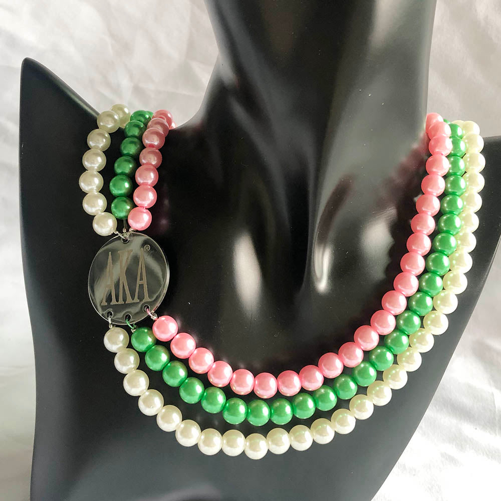 Exquisite Pink Green ALPHA DST ZPB sorority society Pearl Stainless Steel Necklace