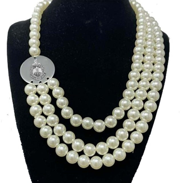 Greek letters Sorority Shield crest Stainless Steel Multilayer Accessories Long Pearl Necklace