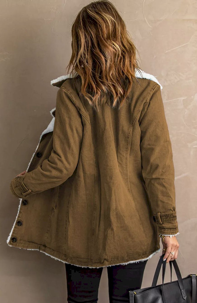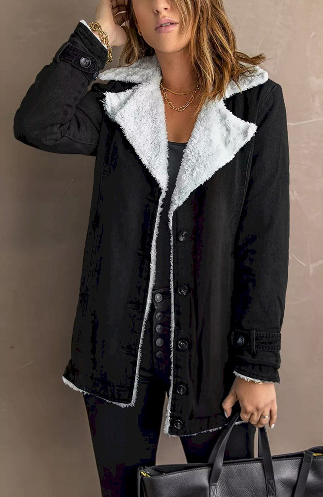 •Jacket with lapel collar and button closure is classic and fashionable.