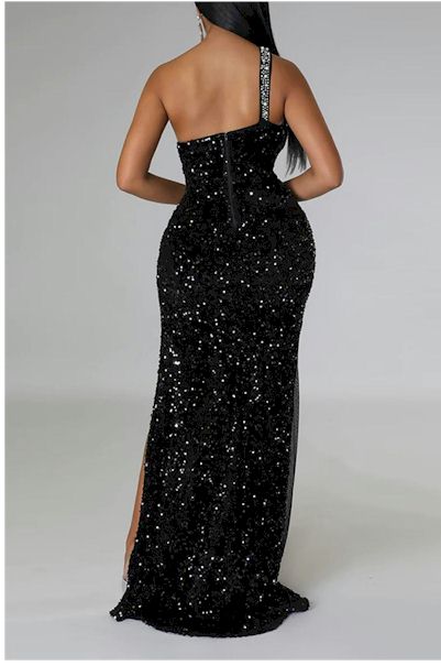 Elegance in Every Step: High Slit Zip-Up Sequin Gown Sizes S to 2XL