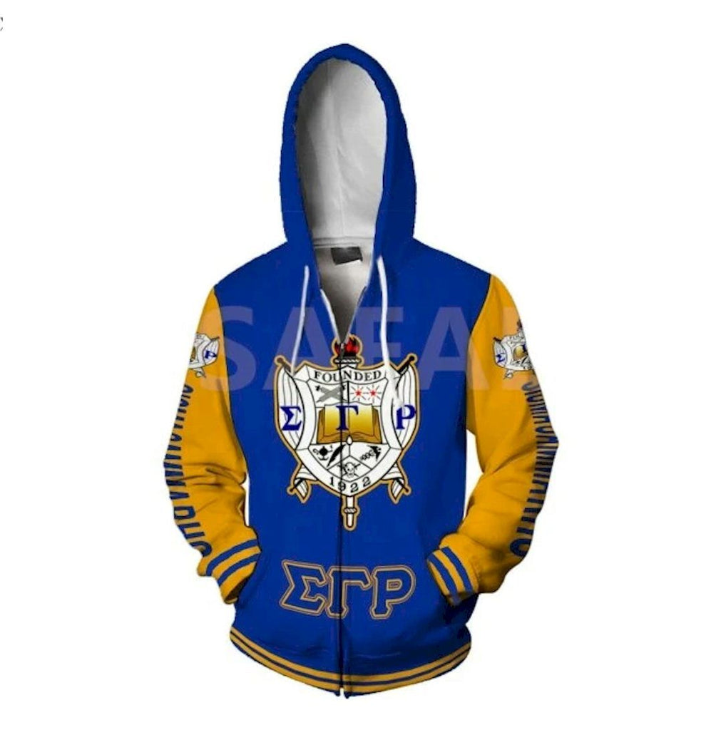 Sigma Gamma Rho All Over Hoodie Zipper, Pullover, Sweatshirt