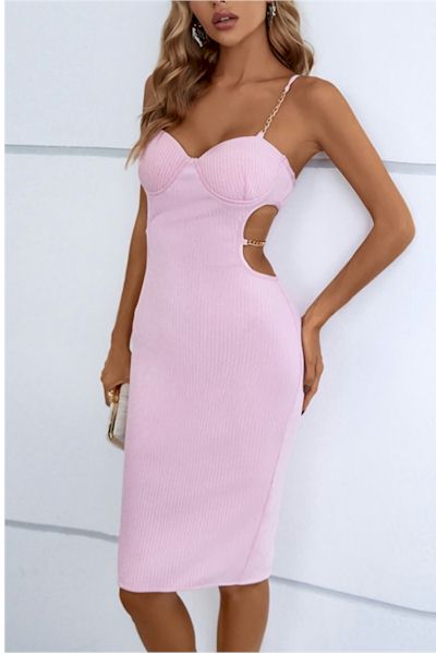 Be the center of attention in this show-stopping midi dress! Featuring fashionable sling chain straps, a slit for some extra sass, and ribbed knit and padded fabric for comfort and style, you'll be the talk of the town. Puttin' on the Ritz never felt so good!