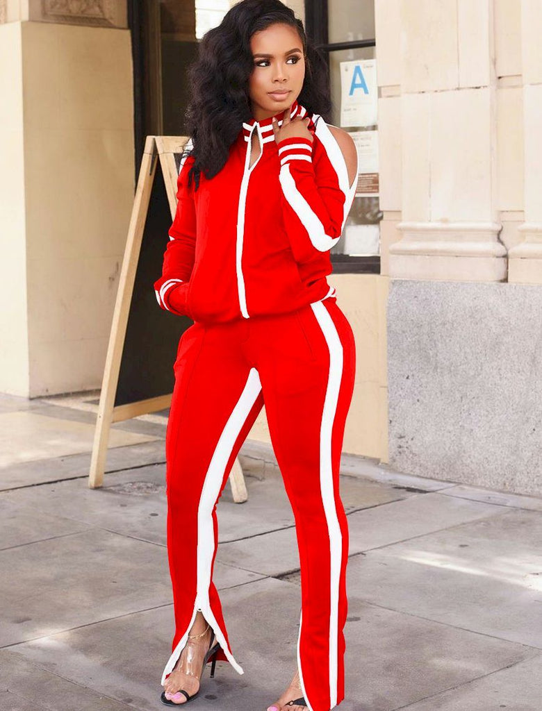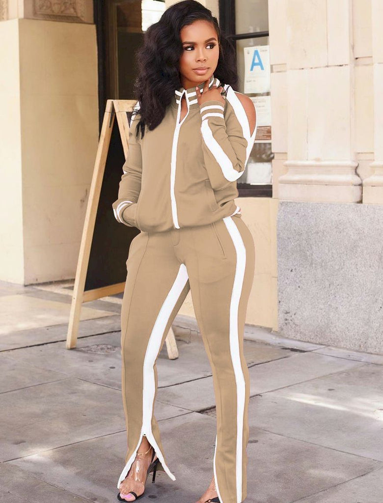 Striped Spliced Sportswear Outfits Women's Tracksuit Zipper Up Long Sleeve Jackets and Fitness Legging Activewear Sweat Suits
