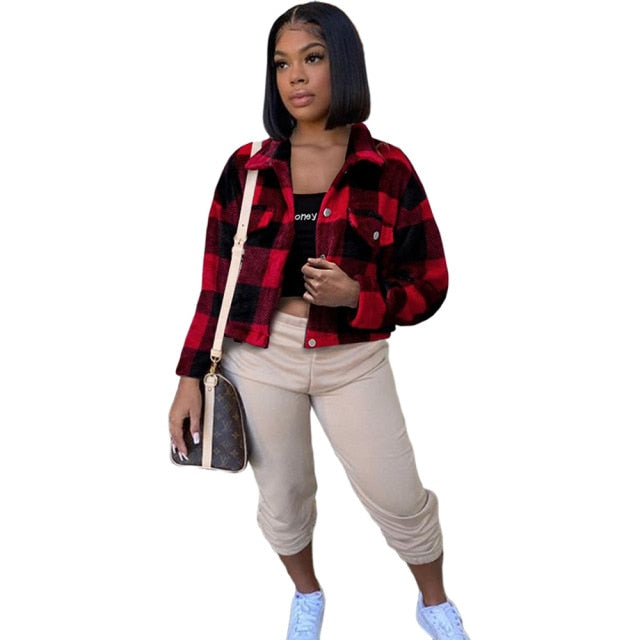 Yellow Blue Color Block Spliced Crop Jackets Women Casual Turn Down Collar Long Sleeve Coat Fall Winter Button Pocket Outwears